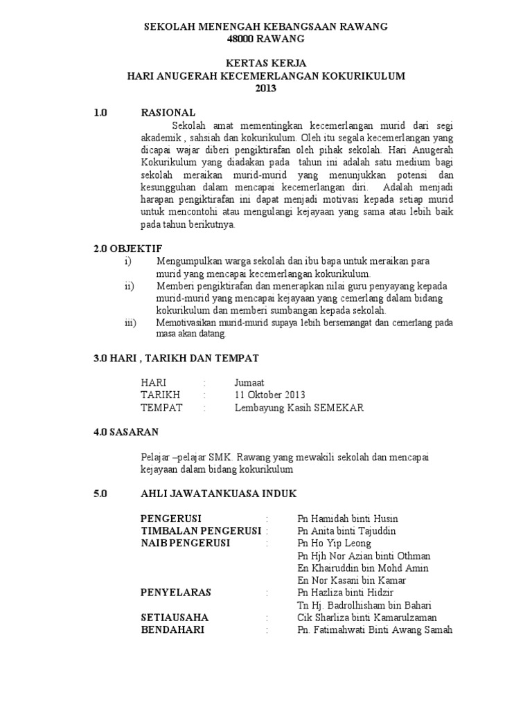 Kertas Kerja Anugerah Kokurikulum 2013 Pdf