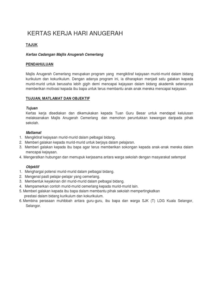 Contoh Kertas Kerja Hari Anugerah Cemerlang Pdf
